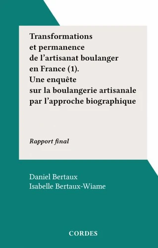 Transformations et permanence de l'artisanat boulanger en France (1). Une enquête sur la boulangerie artisanale par l'approche biographique. Rapport final