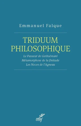 Voici, réunies en un seul volume, trois oeuvres fondamentales de la philosophie contemporaine. Voici la lecture continue qu'Emmanuel Falque mène des trois jours de la Passion du Christ. Voici, récapitulée, l'expérience de Dieu qui est celle de l'homme. Qu'en est-il de l'épreuve de l'angoisse, de la souffrance, de la mort à laquelle conduit le vendredi saint ? Qu'en est-il de l'épreuve de la naissance et de la résurrection à laquelle ouvre le dimanche pascal ? Qu'en est-il de l'épreuve du corps et de l'éros, de l'animalité et du chaos intérieur à laquelle appelle le jeudi saint ? C'est bien Le Passeur de Gethsémani qui, en opérant la Métamorphose de la finitude, institue Les Noces de l'Agneau.