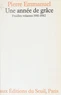 Une année de grâce : un an de plus donné à l'auteur pour observer, se passionner, tenter de comprendre, ébaucher un sens. L'attention, l'intuition, voire la curiosité simple, l'empêchent de croire que le jeu des événements et des hommes ne soit qu'une incessante fantasmagorie. Ou, s'il le croit, il croit aussi le contraire ; que l'homme est lancé dans une aventure sans borne où tout est signe, même le quotidien.