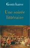 " Une soirée littéraire " est un texte de Gontcharov publié en 1890 et inédit en français, qui offre au lecteur un extraordinaire moment théâtral où s'affrontent les tenants de différents courants littéraires. Un riche aristocrate organise pour un de ses amis, haut fonctionnaire, une soirée littéraire où ce dernier va lire un roman qu'il a écrit, alors qu'il n'est pas écrivain. Une société choisie est invitée à cette soirée, et un débat a lieu après la lecture, quand l'auteur a quitté la pièce.