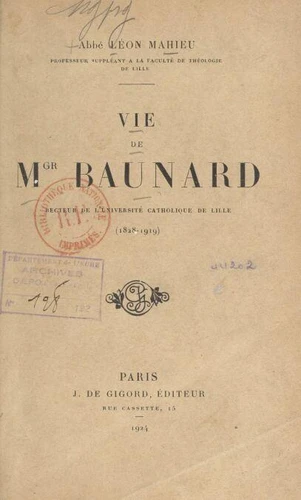 Vie de Mgr Baunard. Recteur de l'Université catholique de Lille (1828 - 1919)