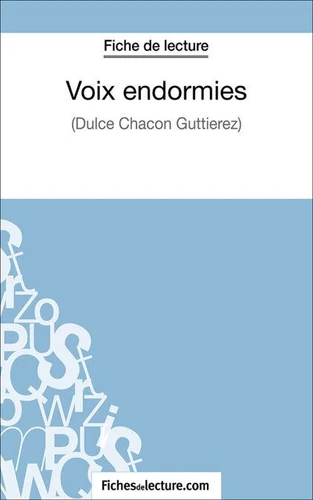 Cette fiche de lecture sur Voix endormies de Dulce Chacon Guttierez propose une analyse complète de l'oeuvre : . une biographie de Guttierez . un résumé de Voix endormies. une analyse des personnages . une présentation des axes d'analyse de Voix endormies de Dulce Chacon GuttierezNotre fiche de lecture sur Voix endormies de Dulce Chacon Guttierez a été rédigée par un professeur de français.À propos de FichesDeLecture.com :FichesdeLecture.com propose plus 2500 analyses complètes de livres sur toute la littérature classique et contemporaine : des résumés, des analyses de livres, des questionnaires et des commentaires composés, etc.