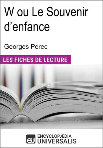 Une fiche de lecture spécialement conçue pour le numérique, pour tout savoir sur W ou Le souvenir d'enfance de Georges Perec.À PROPOS DE L'ENCYCLOPAEDIA UNIVERSALISReconnue mondialement pour la qualité et la fiabilité incomparable de ses publications, Encyclopaedia Universalis met la connaissance à la portée de tous. Écrite par plus de 7 400 auteurs spécialistes et riche de près de 30 000 médias (vidéos, photos, cartes, dessins.), l'Encyclopaedia Universalis est la plus fiable collection de référence disponible en français.