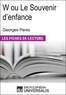 Bienvenue dans la collection Les Fiches de lecture d'Universalis !W ou Le souvenir d'enfance est un livre de Georges Perec (1936-1982) publié en 1975. L'auteur y fait alterner deux récits apparemment sans rapport : l'un autobiographique - l'évocation de ses parents et le souvenir de son enfance sous l'Occupation - ; l'autre purement fictionnel - la description d'une île imaginaire où le sport est roi.
