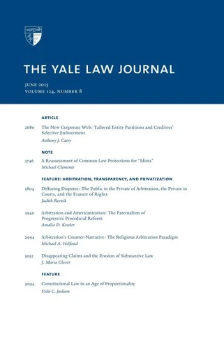 Kessler"Arbitration's Counter-Narrative: The Religious Arbitration Paradigm, " Michael A. Helfand"Disappearing Claims and the Erosion of Substantive Law, " J. Maria GloverFeature, "Constitutional Law in an Age of Proportionality, " Vicki C. JacksonQuality digital formatting includes fully linked footnotes and an active Table of Contents (including linked Contents for all individual Articles, Notes, and Essays), proper Bluebook formatting, and active URLs in footnotes.
