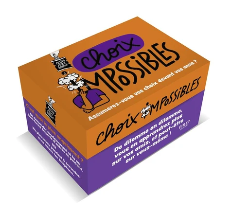 Assumerez-vous vos choix devant vos amis ? Quelle est la règle du jeu ? Vos amis vous connaissent-ils vraiment ? Tirez une carte et lisez les deux propositions. Avant d'indiquer laquelle est, selon vous, la plus frustrante/dégoûtante/énervante... , laissez les autres joueurs deviner votre réponse. S'ils ont vu juste, vous gagnez 1 point. Sinon, c'est qu'ils vous connaissent bien mal !