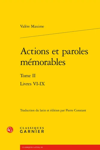 Valère Maxime compile des anecdotes historiques remarquables par leur aspect édifiant. S'il n'est pas une oeuvre d'historien, ce manuel à destination des orateurs, des écrivains ou du lecteur en quête d'élévation morale, puise chez Tite-Live, Salluste, Trogue Pompée ou d'autres sources perdues. Edition bilingue latin-français