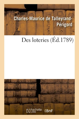 Des loteries . Par M. l'évêque d'Autun. Date de l'édition originale : 1789 Le présent ouvrage s'inscrit dans une politique de conservation patrimoniale des ouvrages de la littérature Française mise en place avec la BNF. HACHETTE LIVRE et la BNF proposent ainsi un catalogue de titres indisponibles, la BNF ayant numérisé ces oeuvres et HACHETTE LIVRE les imprimant à la demande. Certains de ces ouvrages reflètent des courants de pensée caractéristiques de leur époque, mais qui seraient aujourd'hui jugés condamnables.