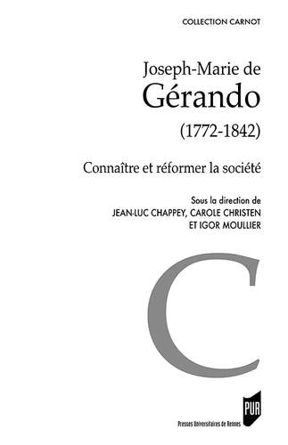 Joseph-Marie de Gérando (1772-1842) est une personnalité centrale du monde politique, intellectuel et administratif de la première moitié du XIXe siècle. Il a souvent été célébré pour son rôle fondateur dans des champs aussi divers que l'histoire de la philosophie, l'anthropologie, le droit administratif, la philanthropie, ou l'enseignement mutuel. Au temps des révolutions, dans un contexte où débattent les premiers réformateurs sociaux, il offre, à la croisée des savoirs, des outils pour comprendre, normaliser et transformer la société : des pauvres aux sourds et muets, toutes les formes de marginalité deviennent des objets d'enquête et d'action.