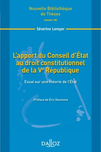 C'est cette perspective - fortement argumentée - qui permet à Séverine Leroyer de prétendre tracer les contours d'une théorie de l'Etat - plus que d'une doctrine constitutionnelle stricto sensu - qui serait propre au Conseil d'Etat et qui viendrait constamment nourrir le droit constitutionnel de la Ve République. (...)".Eric Desmons.