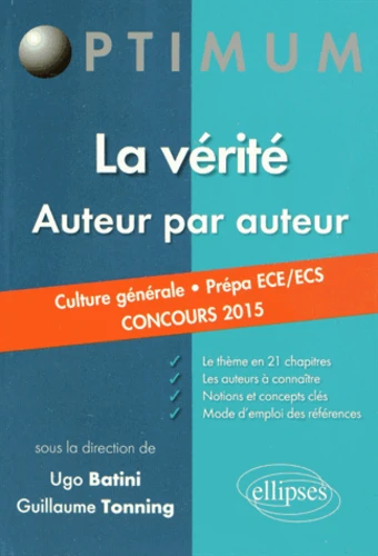 Destiné aux élèves de classes préparatoires économiques et commerciales, cet ouvrage a pour vocation de devenir le compagnon du cours de culture générale tout au long de l'année. Regroupant des auteurs clefs sur le thème du programme, la vérité, ainsi que des exemples précis tirés aussi bien de la littérature que du septième art, il cherche à mettre en valeur les éléments essentiels des différentes doctrines tout en facilitant leur utilisation au sein d'une dissertation.