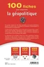 100 fiches pour connaître les notions essentielles et les enjeux majeurs de la géopolitique. ? 100 fiches de géopolitique traite de façon claire et structurée les notions essentielles de l'analyse géopolitique et fournit les clés de compréhension des enjeux contemporains. Les six parties couvrent un champ de connaissances et d'études indispensables aux étudiants de premier cycle universitaire (géopolitique, science politique, relations internationales, classes préparatoires, école de journalisme...) : l'analyse géopolitique, le grandes écoles de géopolitique, les grands enjeux contemporains, géopolitique de la puissance, géopolitique des conflits, géopolitique, vulgarisation et culture populaire.