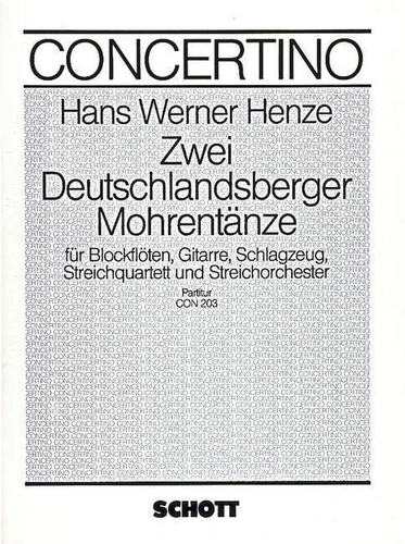 Henze composed these dances, which can be scored for various instruments, for the orchestra of the conservatory of Deutschlandsberg (Austria). These compositions are based on an anonymous "Morissa" (Spanish designation for a dance form probably introduced by crusaders) from the English Fitzwilliam Virginal Book. Instrumentation : 4 recorders, guitar, percussion, string quartet and string orchestra