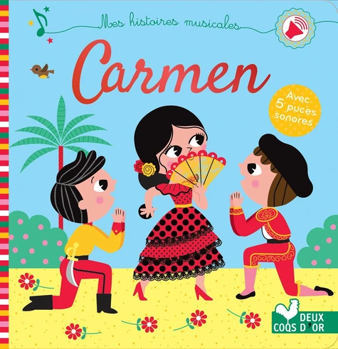 En Espagne, Carmen, une jeune bohémienne rebelle, déclenche une bagarre dans son usine. Le brigadier Don José chargé de la mener en prison tombe sous son charme et la laisse s'échapper... 5 doubles pages pour découvrir l'histoire et 5 grands airs de Carmen, le célèbre opéra de Bizet dont La Habanera, Le Seguedille, l'air du Toréador, des arènes etc. Avec un imagier qui accompagne l'histoire pour s'éveiller !