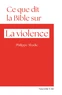 Celui qui ouvre la Bible pour la première fois ressent souvent l'impression pénible que ce texte sacré regorge de textes violents. Il est vrai que l'on peut comptabiliser pas moins de six cents passages violents dans l'Ancien Testament où l'on voit se détruire et s'exterminer des peuples, des rois et des individus... Refuser à la Bible tout rapport à la violence au nom d'une sainteté rêvée du texte, n'est-ce pas oublier que ce livre parle avant tout d'hommes réels avec leurs passions et leurs contradictions ? Avec Ce que dit la Bible sur la violence l'objectif de l'auteur, Philippe Abadie, n'est pas d'absoudre la Bible de toute violence, et encore moins de l'y enfermer mais de voir en quoi elle propose une réflexion sur la violence, opérant une sorte de catharsis qui permet à chacun de relire sa propre violence et propose des chemins de sortie.