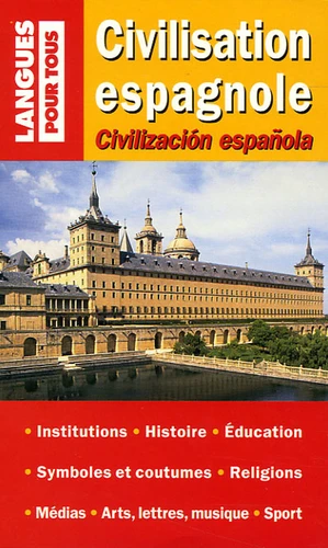 Cet ouvrage bilingue aborde en 40 chapitres les principaux aspects de la civilisation espagnole : fondements géographiques et historiques, institutions (politiques, religieuses, syndicales, etc.), enseignement, arts, lettres, musique, cinéma et médias, fêtes et coutumes, jeu et corrida, gastronomie, sports, tourisme, villes, environnement, économie, etc. Il est conçu pour répondre de façon précise aux besoins des étudiants en licence et maîtrise d'espagnol et des élèves des classes préparatoires. Il s'adresse également à tous ceux qui veulent mieux connaître ou découvrir la richesse du passé et du présent d'un pays en pleine expansion.