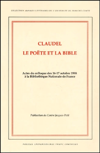 Cet ouvrage collectif recueille les communications du colloque des 16 et 17 octobre 1998, organisé à l'occasion de la parution aux éditions Gallimard du premier tome du Poëte et la Bible. La qualité des communications va de pair avec la notoriété de leurs auteurs. Universitaires et spécialistes de l'exégèse biblique proposent des études approfondies, précises et systématiques de la pensée religieuse de Claudel confrontée aux Ecritures. Des intervenants tels que Jean-Pierre Angremy, le cardinal Lustiger, Henri Meschonnic et Philippe Sollers, sans jamais perdre de vue la lecture claudélienne de la Bible et son originalité, ouvrent des perspectives sur l'exégèse moderne, la poétique des textes sacrés et de leur lecture, avec des aperçus d'une actualité et d'une précision inédites. Tous les claudéliens, mais aussi les théoriciens de la poésie et de la traduction, les critiques qui étudient les rapports entre la Bible et quelque texte littéraire que ce soit, les théologiens trouveront intérêt, et profit à cette publication.