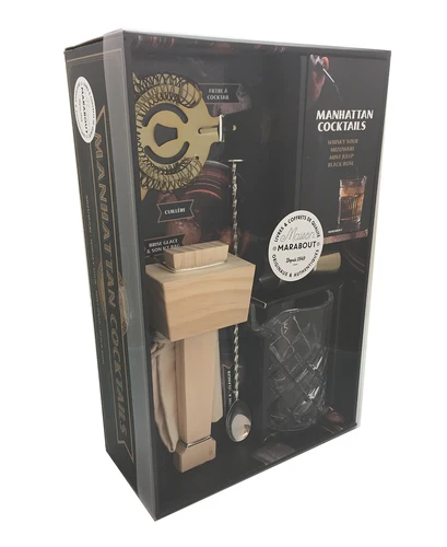 Maîtriser l'art du cocktail comme dans les meilleurs bars de Manhattan. Grâce à ce coffret, apprenez à maîtriser l'art des cocktails les plus tendance, du plus simple au plus sophistiqué, du whisky sour au mint julep. Découvrez les ingrédients secrets qui font la différence et réalisez en un tour de main ces cocktails de légende. Ce coffret comprend : 1 marteau en bois et un sac en toile, 1 presse-agrumes céramique 2 couleurs, 1 gigger cuivre, 1 cuillère longue silver, 1 grand verre taillé 450 ml.