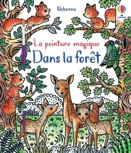 Un livre de peinture magique pour donner des couleurs à de nombreux animaux de la forêt. Des petites souris qui mangent des baies, un ours qui grimpe à un arbre, un blaireau qui se promène dans la nuit, et bien plus encore : avec le pinceau fourni, passe un peu d'eau sur les illustrations en noir et blanc pour faire apparaître les couleurs comme par magie. On peut ensuite détacher les pages et exposer ses oeuvres d'art un peu partout ! dès 5 ans