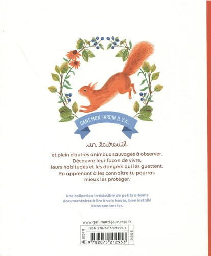 Une collection irrésistible de petits albums documentaires à lire à voix haute, bien installé dans son terrier. Dans mon jardin il y a... un écureuil et plein d'autres animaux sauvages à observer. Découvrez leur façon de vivre, leurs habitudes et les dangers qui les guettent. En apprenant à les connaître vous pourrez mieux les protéger.
