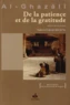 Le Prophète disait : "La situation du croyant est vraiment étonnante ! Tout ce qui le concerne est merveilleux : quand, devant un malheur, il fait preuve de patience, cela lui sera bénéfique ; et quand, dans un moment de joie, il se montre reconnaissant envers Dieu, alors cela lui sera également bénéfique. Cette chose n'est réservée qu'au croyant." L'imam al-Ghazâlî expose ici la nature, les mérites et les implications pratiques de ces deux vertus de la foi que sont la patience (al-sabr) et la gratitude (al-shukr).