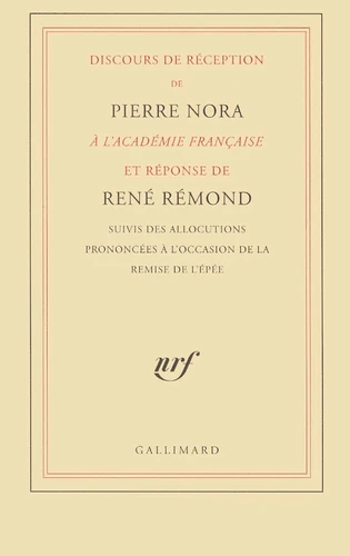 Pierre Nora a été élu à l'Académie française à la place laissée vacante par la mort de Michel Droit. Ce discours a été prononcé à l'occasion de sa prise de séance le jeudi 6 juin 2002. Après la réponse de René Rémond, les allocutions prononcées à l'occasion de la remise de l'épée l'ont été par Geneviève Barrier, Mona Ozouf, Antoine Gallimard, Jacques Revel, Alain Decaux et, in fine, Pierre Nora.
