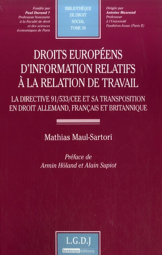 Droits européens d'information relatifs à la relation de travail. La directive 91/533/CEE et sa transposition en droit allemand, français et britannique