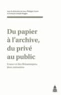 Mais se pose invariablement le problème de la frontière, toujours fluctuante, entre privé et public : qu'est-ce qu'un document privé, qu'est-ce qu'un document public ? La réponse diffère selon que l'on se réfère au politique ou au juridique (le document public, émis par un détenteur ou un agent de l'autorité publique, s'oppose à celui qu'émet une personne privée), ou au social (le document public est accessible au public, à l'inverse de celui qui est secret, ou, stricto sensu, privé - ici s'ouvre la problématique de l'espace public), ou enfin au métier d'historien (les documents publics sont ouverts à l'historien, par opposition à ceux conservés dans des fonds inaccessibles).