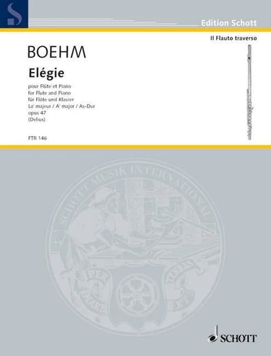 Theobald Böhm (1794-1881), who has become world-famous especially as inventor of the modern flute, was an equally respected flute virtuoso and composer in his time. Elégie Op. 47, his last work, was published by Schott in 1880 and had been available only as a reprint for a long time. Now, this important work is finally available in a revised version in modern notation. Instrumentation : flute and piano op.