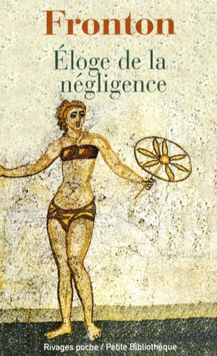Du grand orateur qu'était Fronton (vers 95-166 ap. J.-C.), il ne reste qu'un ensemble de lettres, redécouvert et publié au XIXe siècle. Parmi elles, les plus belles sont celles adressées à l'empereur Marc Aurèle dont Fronton était le précepteur. La correspondance entre les deux hommes nous touche par sa dimension affective. Elle revêt aussi et surtout un caractère pédagogique. Ainsi les éloges paradoxaux, dont l'Eloge de la négligence est le meilleur exemple, font partie de l'éducation rhétorique de l'empereur. Fronton craint - d'abord chez l'élève laborieux trop plein de zèle - et ensuite, chez l'empereur ennemi du repos et du divertissement, un dangereux penchant au dogmatisme. Fronton déploie dans ces textes toute sa verve rhétorique avec légèreté et finesse d'esprit.