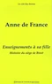 La fille de Louis XI est connue pour avoir fermement gouverné la France après la mort de son père, alors que son frère Charles VIII était encore mineur, qu'elle-même n'avait pas la trentaine et que faisait rage la " guerre folle " des grands nobles. Ayant maié son frère à la duchesse Anne de Bretagne (1491), elle se concentra sur l'organisation de la vie de la Cour, l'éducation des femmes qui l'entouraient et la gestion de ses duchés, tandis que son mari, le duc Pierre de Bourbon, demeurait le second personnage de l'Etat. es deux textes en prose réunis ici sont les seuls que l'on connaisse d'elle. Les Enseignements, écrits peu après son veuvage (1503) à l'intention de sa fille unique alors adolescente, sont un document unique sur l'éducation des grandes dames de la Renaissance. La nouvelle qui les suit en illustre certains messages, en mettant en valeur la conduite d'une femme exemplaire, dans un moment critique de la guerre de Cent ans. Nourries d'idées et d'expérience, ces deux œuvre témoignent de l'extraordinaire personnalité d'Anne de France, des principes qui sont à l'origine de sa réussite personnelle, de sa perception des dangers qui guettaient les femmes de son époque, et d'un talent que la grande Marguerite de Navarre fut la première, sans doute, à remarquer.