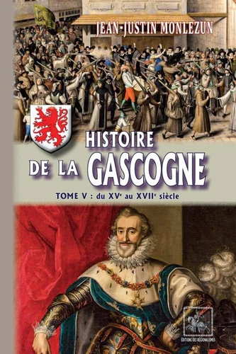 » (extrait de la Préface). Ce cinquième tome démarre à la fin du XVe siècle alors que la Maison de Foix-Béarn monte sur le trône de Navarre et s'achève, sous Henri IV, roi de France et de Navarre, lequel rattache définitivement ses domaines personnels à la Couronne. Entre-temps, les Guerres de religion ont ravagé la Gascogne dans la seconde moitié du XVIe siècle - (Cinquième tome qui couvre la période allant grosso modo de 1480 à 1607.)L'abbé Jean-Justin Monlezun (1800-1859), né à Aignan (Gers) est un des principaux historiens régionalistes du XIXe siècle.