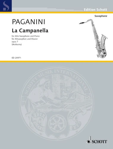 Raaf Hekkema's (1968) arrangement of the famous work by Paganini was initiated by a commission of the Dutch Noord Nederlands Orkest which asked him to play Paganini's Violin Concerto No. 2 at a tour. Like its virtuoso counterpart, Capriccio No. 24, the famous last movement La Campanella which had inspired many other composers like Schumann and Liszt reflects, in the version for saxophone, the great wealth of 21st-century saxophone playing - a breathtaking piece full of saxophone acrobatics ! Already available are the famous 24 Capricci Op.