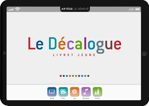 Sous forme graphique de tablette, le livret jeune permet de conserver une trace de ce qui aura été découvert au fil des rencontres et de rentrer dans une réelle démarche de prière nourrie par chaque commandement.