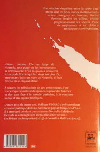 Une relation singulière entre la veuve d'un grand chef coutumier et deux jeunes métropolitains venus enseigner dans un collège de brousse. Rachel devenue lingère du collège dévoile progressivement les secrets d'une vie surprenante et les relations amoureuses s'entrecroisent. Le second texte s'appelle " Nou " comme l'île au large de Nouméa, une plage où les homosexuels se retrouvent. C'est là qu'on a découvert le corps de Michel qui fut, vingt ans plus tôt, enseignant dans un lycée de Nouméa.