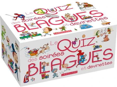 Une boîte quiz qui contient : 100 cartes questions ; Un petit livret avec les réponses ; Une boîte quiz qui permet de s'amuser, de rigoler et de se lancer des défis entre amis. Les 100 cartes questions sont réparties en 7 onglets : Mimes ; Défis ; Karaoké ; Devinettes ; M. et Mme ; Gages ; Mots en folie. 1 livre de 128 pages comportant les règles du Quiz et les réponses aux 100 questions du jeu.