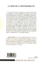 Cet essai analyse les conditions du "sens de la responsabilité". L'évocation de la logique et du droit, l'étude des grands modèles de l'éthique et de la philosophie contemporaine aboutissent ici à certaines hypothèses concernant le fondement "existentiel" du "sens" de la responsabilité. C'est dans le rapport de l'homme au monde naturel que se constitue l'exigence de répondre de soi, témoignant ainsi d'un lien irréductible entre la "responsabilité" et la condition humaine.
