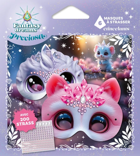 Fantasy Dreams PRECIOSA, c'est un monde empreint de féerie et de mystère, à découvrir grâce à ces 7 parures pour se déguiser en animaux féériques. La pochette contient 7 masques à décorer avec 190 cristaux et 10 joyaux autocollants et du fil élastique.