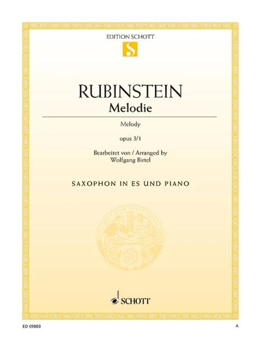 Originally composed for piano solo, Rubinstein's 'Melody' Op. 3/1 is the best-known work written by the Russian composer. Thanks to the simple, yet tender melody and its expressive harmony, the name of the composer will be remembered forever. The piece makes an excellent encore to a concert. Instrumentation : saxophone in Eb and piano op. 3/1