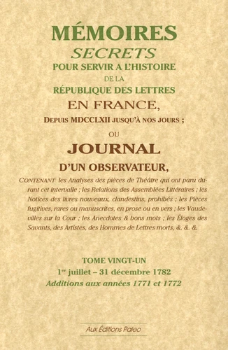 Mémoires secrets ou Journal d'un observateur. Tome 22, 1er Janvier - 11 Juin 1783 Bachaumont, François Mouffle d'Angerville50,00 €