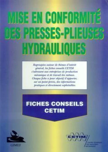 Regroupées autour de thèmes d'intérêt général, les fiches conseils CETIM s'adressent aux entreprises de production mécanique et de travail des métaux. Chaque fiche a pour objectif d'apporter, sur un point précis des informations pratiques et directement exploitables. Ces fiches sont issues de l'étude de faisabilité de mise en oeuvre de dispositifs de protection sur presses-plieuses, effectuée par le Cetim à la demande du Ministère du Travail.