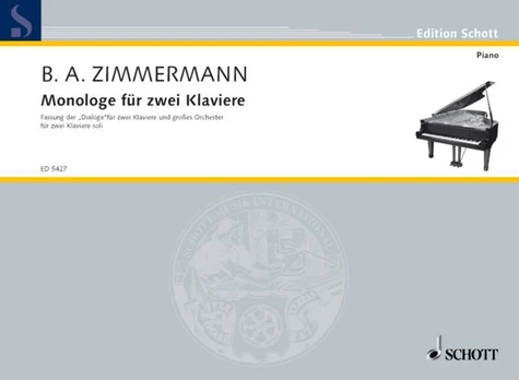 'Monologe - this is a piece for two pianists ; real monologues of these pianists who, though simultaneously, [... ] do not always play at the same 'time' ; [... ] losing themselves in their 'own thoughts', as it were. ' (Zimmermann) Instrumentation : 2 pianos (4 hands)