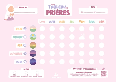 Pour un suivi hebdomadaire de mes 5 prières