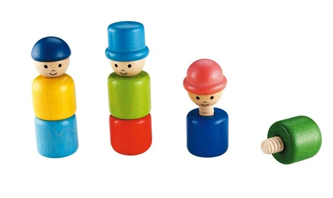 Jeu de vissage et d'empilement.Grâce à la combinaison des pièces colorées, l'enfant crée différents personnages.