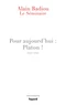 En ce sens, il est une sorte d'introduction simultanée à Platon et à mon oeuvre propre. Tout cela lui donne une étrange allure à la fois joyeuse et cependant chargée d'un contenu essentiel, presque unique dans mes écrits. Comme si ce dialogue, qui fait une voix de deux ou trois voix, parvenait à orchestrer mes thèmes essentiels au lieu de les laisser à leur austère nudité". A. B. Depuis 1966, une part importante de l'enseignement du philosophe Alain Badiou a pris la forme d'un séminaire, lieu de libre parole et laboratoire de pensée.