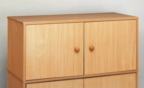 Surmeuble à portes (teinte hêtre) permet d'accroître la capacité de rangement en hauteur, Ce Surmeuble à portes se superpose à chacun des meubles de la gamme au format 100 x 106 cm. Il se fixe très simplement par 2 vis et 2 taquets sur les côtés (fournis). Il a 1 étagère réglable à 2 hauteurs. Il est équipé d'un verrou livré avec 2 clés. Ce surmeuble peut aussi s'utiliser seul, posé au sol ou 2 surmeubles posés l'un sur l'autre.
