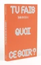 "Tu fais quoi ce soir ? " est un recueil de captures d'écrans de conversations éphémères que Bulle Batalla a eu avec des hommes de son âge, des amis, des connaissances, des inconnus réagissant à ses posts et photos publiés sur les réseaux. Les mots sont crus et la rencontre intime est bien souvent l'unique but de ces contacts numériques. A travers ces archives se dévoile une forme actuelle de correspondance nocturne, immédiate, sans détour.