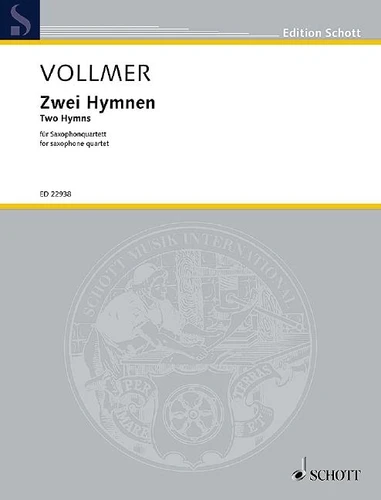 Ludger Vollmers Zwei Hymnen für Saxophonquartett basieren auf einer Auftragskomposition, welche für den 20. Jahrestag der Wiedervereinigung entstand. Zu diesem Anlass hatte Vollmer für die Stadt Jena ein Streichquartett unter dem Titel ... und der Zukunft zugewandt komponiert, das Motive der beiden historischen deutschen Nationalhymnen verband. Liebevoll und heiter näherte sich der Komponist der Thematik.