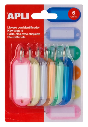 6 porte - clés colorés avec étiquette blanche