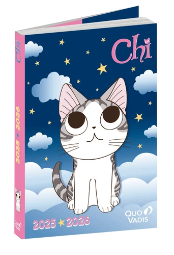 Quo Vadis & Chi déclinent sur ses agendas, trousses, cartables et autres articles de papeterie le si mignon chaton Chi pour le plus grand plaisir des enfants. Agenda journalier scolaire tout en couleurs, avec une présentation 1 jour par page (sauf week-end) afin d'offrir un large espace de note. Comprend des lignes et interlignes pour s'adapter à toutes les écritures, et une marge pour aider à structurer la prise de note des devoirs. Papier blanc Clairefontaine pour une écriture douce et fluide et coins perforés détachables pour se répérer facilement et rapidement. Couverture en carton avec vernis brillant ou mat Grands rabats pouvant servir de marque-page.